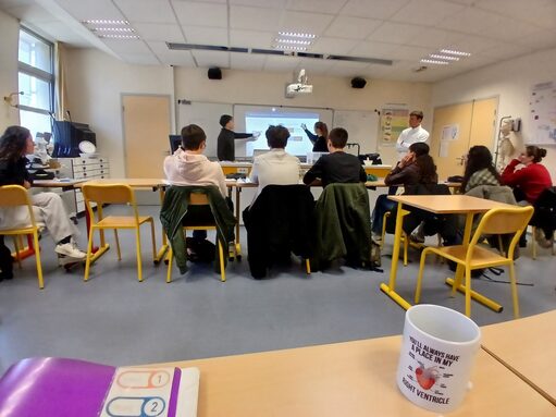 C’est dans cette optique que trois étudiants de l’université de Montpellier sont venus nous rendre visite : M. Romain Gimbernat, ancien élève du lycée ayant fait partie de la première promotion de la prépaMed et actuellement en quatrième année de Pharma, Mme Kristen Guy, étudiante en troisième année de médecine, ainsi que M. Clément Pons, étudiant en troisième année de pharma.